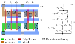 - Gatterentwurf: MOS-Transistoren als Schalter, FCMOS-Gatter, deaktivierbare Treiber,